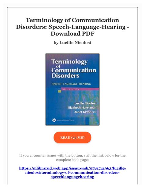 Terminology of Communication Disorders Speech-Language-Hearing Epub By Click Button. Terminology of Communication Disorders Speech-Language-Hearing it’s easy to recommend a new book category such as Novel, journal, comic, magazin, ect. You see it and you just know that the designer is also an author and understands the challenges involved with having a good book. You can easy klick for detailing book and you can read it online, even you can download it